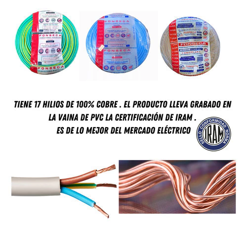Cable 100% cobre autorizado y certificado segun normas IRAM. Calidad premium superior a otras marcas