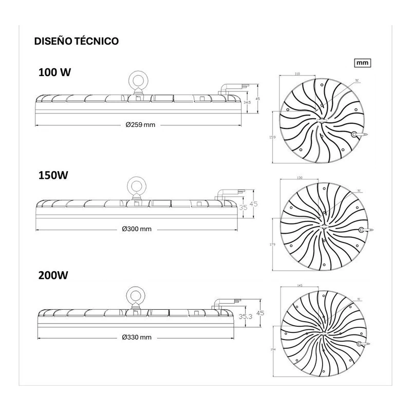 Eficiencia luminosa: 120 lm/W, ofreciendo máxima iluminación con menor consumo de energia;