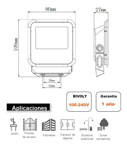 Proyector de LED ideal para iluminación externa y de resalte.