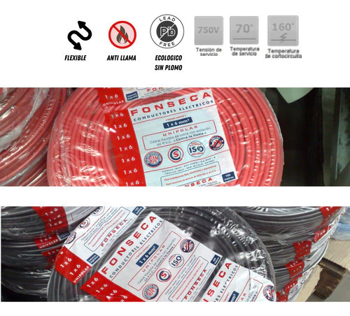 cable certificado Unipolar Fonseca - Cable instalación eléctrica normalizado - cable Fonseca cobre - cables ignífugos - Rollo cable certificado 100metros -