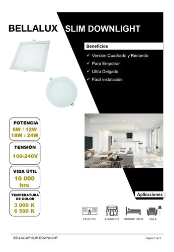 PLAFON LED BELLALUX DE EMBUTIR 24W CUADRADO LUZ CALIDAA 3000K
